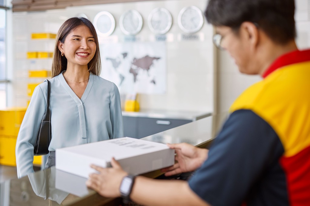 DHL Express offers a fast, secure, and reliable worldwide courier service from over 1,500 DHL Service Point locations nationwide – conveniently situated at your local high street or retail park near you. Send letters or parcels within the UK or internationally to over 220 countries and territories with DHL, the global leaders in international shipping. Free envelopes and boxes are provided in store. Simply choose the box size you require, pack and pay in store. Pricing is based on the size of the packaging and the zone that you’re sending it to – no weighing, measuring or printing is required! Reduced CO2 emissions across our network with any parcel sent internationally from a DHL Service Point by the purchase of Sustainable Aviation Fuel.